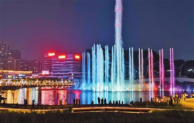 伴隨著激昂的音樂(lè)和投影燈的色彩變換,金灣中心湖內(nèi)的3個(gè)環(huán)狀噴泉和穿插其間的水柱“跳”出了靈動(dòng)的舞蹈,不久后,其所在的中心湖整體工程就將進(jìn)入竣工驗(yàn)收階段。一旁形如展翅飛鳥(niǎo)的金灣市民藝術(shù)中心外,珠海華金開(kāi)發(fā)建設(shè)有限公司項(xiàng)目副經(jīng)理黃兆輝正和同事們?yōu)樽詈蟮目⒐ぷ鰶_刺準(zhǔn)備。