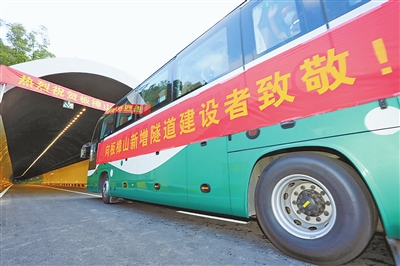在板樟山新增隧道通車儀式現(xiàn)場,掛著“向板樟山新增隧道建設(shè)者致敬”的橫幅隨處可見。歷時兩年,板樟山新增隧道如期投入使用,這當(dāng)中凝聚著無數(shù)建設(shè)者的堅守與努力。