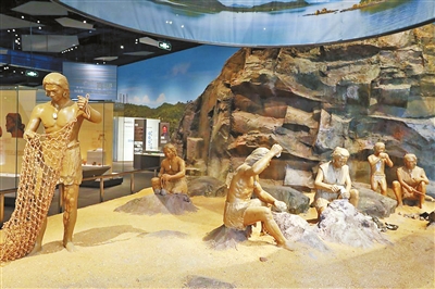 值得一提的是,館內(nèi)還加入了聲、光、電等多媒體元素,能讓觀眾全方位、身臨其境地體驗(yàn)珠海的歷史和文化氛圍。記者看到,在島民遺風(fēng)展區(qū),寶鏡灣巖畫及沿海發(fā)現(xiàn)的巖畫遺跡并非只是單一的還原,而是運(yùn)用現(xiàn)代的光影效果呈現(xiàn)?!叭宋铩⒋刃蜗蟮膸r畫直接來看并不是很清晰,為了使觀眾更加清晰、直觀地感受巖畫制作過程的繪制規(guī)律和線條走向,除了融入光影效果,我們?cè)谠O(shè)計(jì)的時(shí)候還對(duì)巖畫中的線條進(jìn)行了色彩暈染。”珠海博物館陳列部設(shè)計(jì)人員許方正告訴記者。